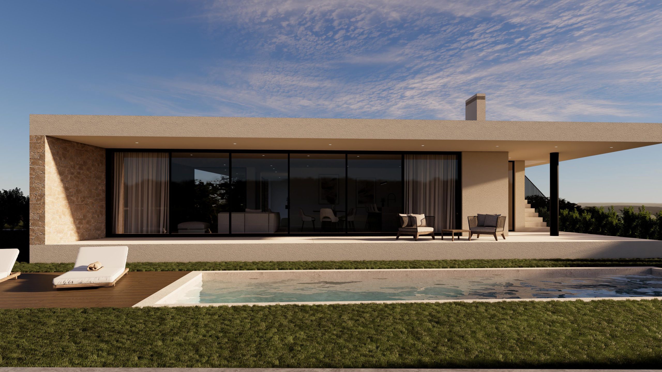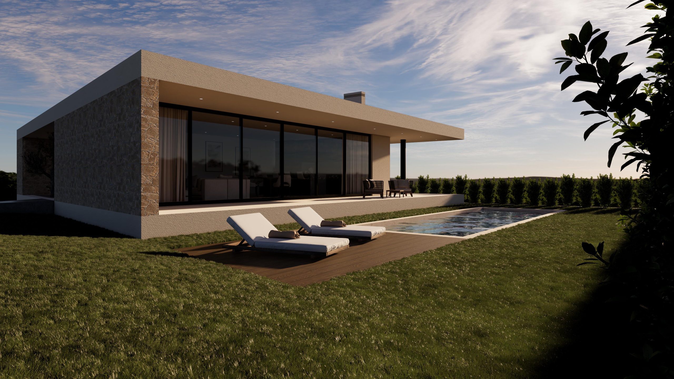 Casa térrea totalmente nova, T3+1 de arquitetura contemporânea que reúne conforto, qualidade, luxo e elevada eficiência energética, localizada a 5 min do mar.