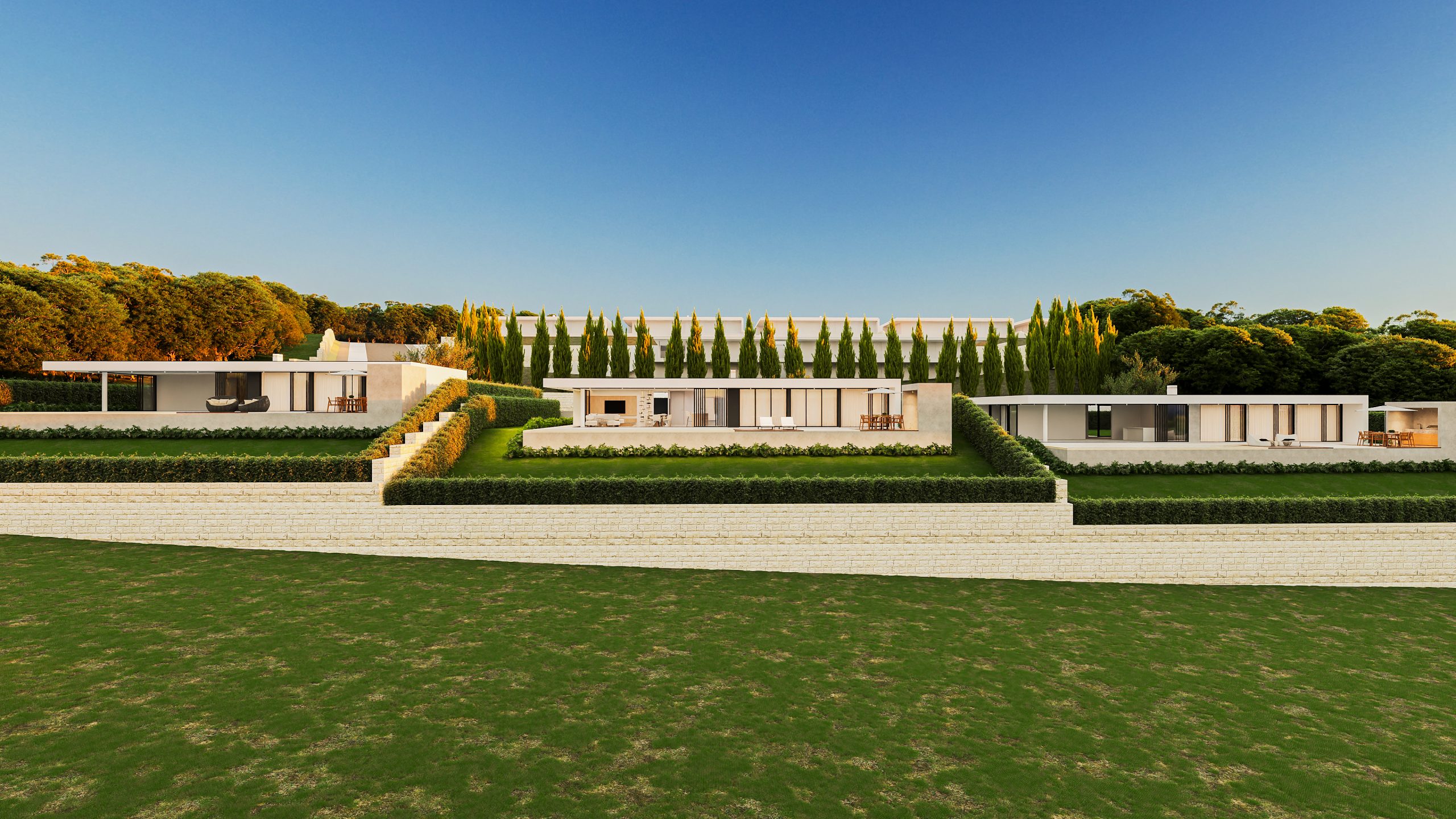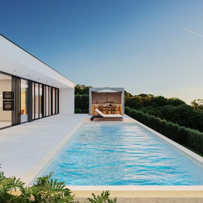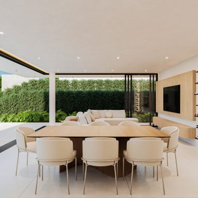 Cada moradia, tipologia T3+1, combina estética contemporânea com funcionalidade, disponibilizando áreas entre 185 m² e 340 m². As casas incluem uma suíte, divisão extra multiusos, zonas sociais luminosas e uma organização pensada para o conforto do dia a dia.